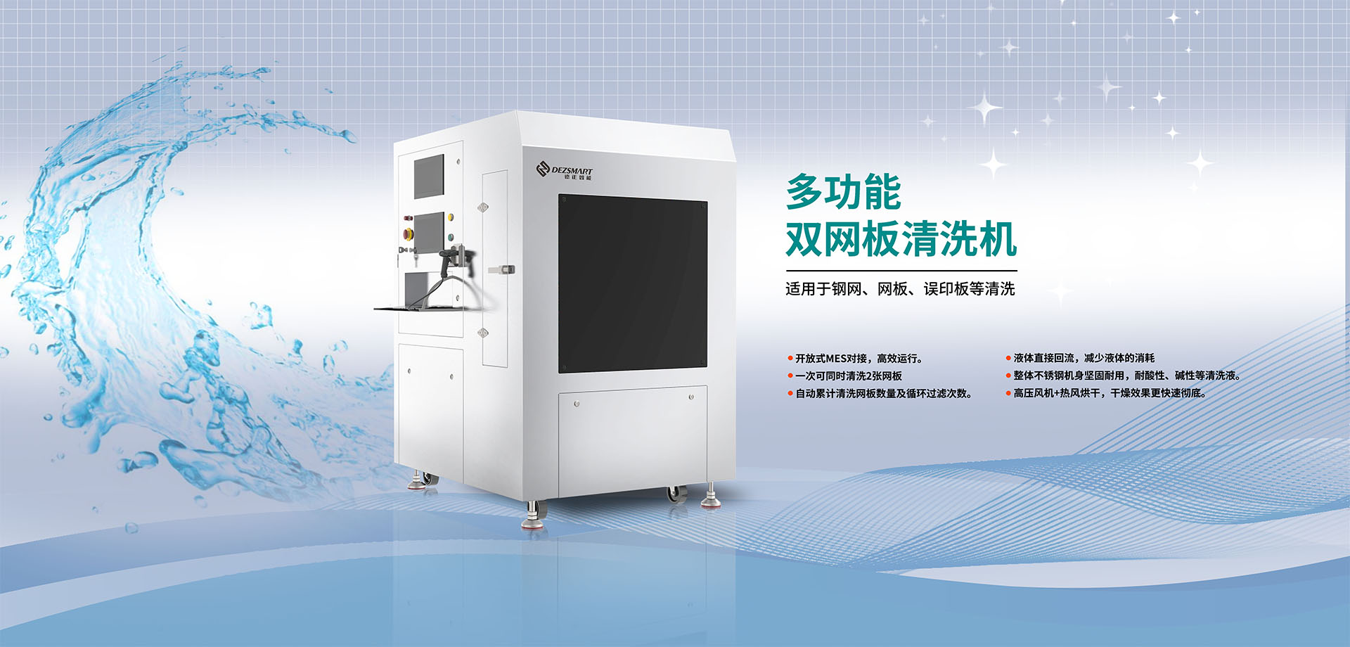 針對(duì)于SMT鋼網(wǎng)、絲印網(wǎng)板的清洗,德正智能使用業(yè)界先進(jìn)的清洗工藝,達(dá)到100%的潔凈和對(duì)環(huán)境的保護(hù)。采用雙液體槽,配備加熱系統(tǒng),實(shí)現(xiàn)清洗、漂洗和熱風(fēng)烘干需求。設(shè)備使用水基型的液體清洗劑及DI水作漂洗,···