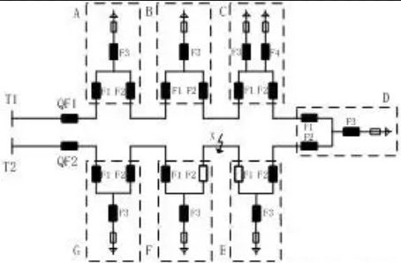 一般由3個(gè)間隔組成,包含兩個(gè)進(jìn)出線間隔和變壓器間隔。進(jìn)出線間隔主要用于缺點(diǎn)線路的隔絕,以及通過調(diào)整電源方向來康復(fù)正常供電。變壓器間隔則通過組合電器來對(duì)變壓器內(nèi)部短路缺點(diǎn)進(jìn)行快速切除。