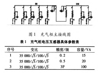 變電站位于高原地區(qū),海拔2100m。變電站選用某公司出產的35kV中壓充氣柜。主接線如圖1所示,其間電壓互感器型號為JDZx-35(ABC),具體參數如表1