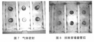 上述均為硬聯接方法產生的應力直接效果于穿墻套管,而穿墻套管為環氧樹脂資料,是全部聯接件中最為單薄的部分,其很或許會直接因所產生的應力而產生碎裂,從面導致漏氣現象產生。針對上述存在的問題,現改進如下: