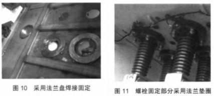 (3)穿墻套管與開關柜底板密封固定部位選用法蘭盤焊接固定設備,如圖10所示,保證穿墻套管與開關柜底板觸摸部分平整無變形。一同螺栓固定部分選用法蘭墊圈,如圖11所示,保證了螺栓緊固力均勻效果于穿墻套管,然后消除了穿墻套管密封固守時的不均勻固定應力。
